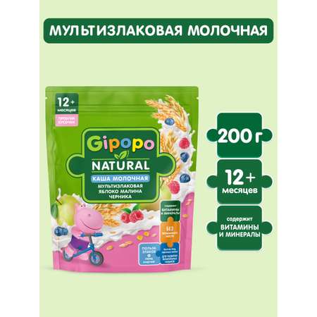 Каша Gipopo молочная мультизлаковая яблоко малина черника 200г 12 месяцев