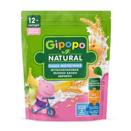 Каша Gipopo молочная мультизлаковая яблоко банан абрикос 200г с 12 месяцев