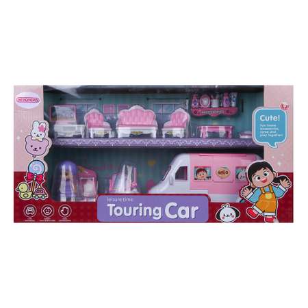 Миниатюрный фургон выполнен из прочного полипропилена и пластика, имеет яркий розово-белый дизайн с забавными наклейками и откидной дверью. Внутри — всё, что нужно для комфортного путешествия: кухня с плитой, раковиной и холодильником; спальня с кроватью и тумбочкой; ванная комната с ванной, унитазом и туалетным столиком; гостиная с диваном, креслами, телевизором и кофейным столиком.
