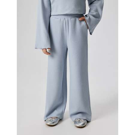 Детские голубые брюки-палаццо изготовлены из трикотажa в рубчик со сверкающим люрексом, который придает образу праздничный штрих. Брюки с эластичным поясом комфортно садятся на разные типы фигуры. Расклешенные к низу свободные брючины не сковывают движений, благодаря чему носятся с удобством. Низ обработан микрооверлоком, что придает интересный акцент в виде волнообразного среза. Блестящая люрексная нить гармонично дополняет голубой цвет изделия, придавая образу блеска и торжественной утонченности. Блестящие брюки для девочки-подростка составят множество праздничных аутфитов. Комбинируйте модель с комплектным джемпером (20220150127), чтобы составить стильный лук для фотосессии, школьного праздника, дискотеки или семейного торжества.