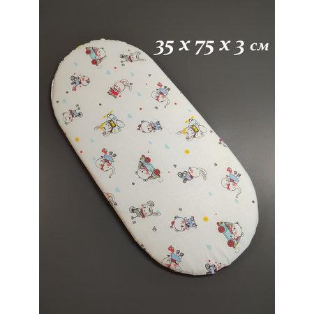 Матрас в коляску люльку для младенца от 0 месяцев. Размер матрасика в коляску 35 на 75 см, высотой 3 см. Матрасик для новорожденного имеет овальную форму, которая удобно помещается в популярные модели колясок.