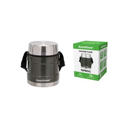Термос BoomHouse для чая кофе еды 1 литр с широким горлом и ремешком походный