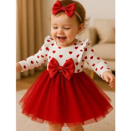 Нарядное платье для девочки - верх выполнен из хлопкового трикотажа в рубчик с принтом сердечек, низ платья выполнен из мягкого фатина сетки , подъюбник выполнен из хлопчатобумажной ткани. Нарядное платье для девочки подходит на фотосессию. Праздничное платье на 2 года для девочки будет отличным подарком. Также появились размеры до 3 лет.
