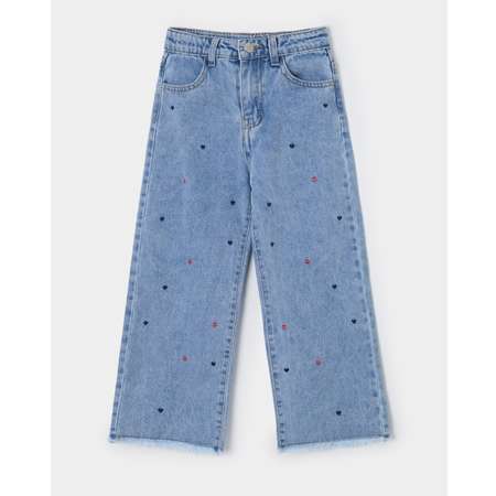 Широкие джинсы для девочки Futurino с вышивкой-сердечками.