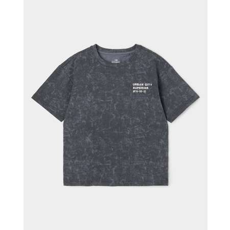Серая футболка для мальчика Futurino, декорированная двухсторонним принтом с надписями.