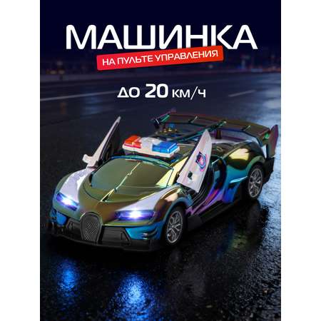 Отличительная особенность данной модели - двери, открывающиеся вверх нажатием кнопки на пульте управления. Резиновые рельефные шины обеспечивают машинке отличное сцепление и высокую скорость на любых поверхностях. Машинка легко управляется интуитивно понятным пультом. Светодиодная подсветка фар сделает процесс игры по-настоящему захватывающим. Машинка на пульте управления имеет ударопрочный корпус, который обеспечивает надежную защиту от механических повреждений.