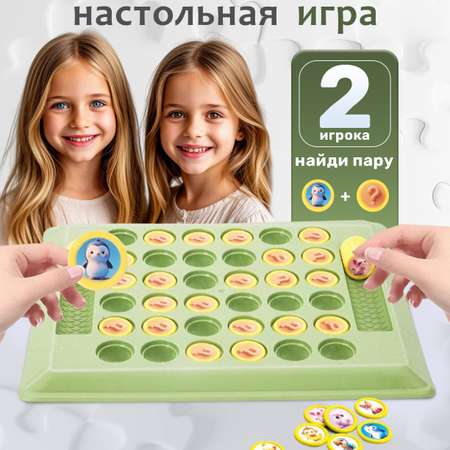 Весёлая и полезная игра для двух игроков, которая поможет ребёнку развивать память, концентрацию и зрительное восприятие. Игроки по очереди открывают фишки и ищут совпадающие пары с изображениями животных. Простые правила, яркий дизайн и компактный размер делают игру идеальной для дома, поездок и детского сада.