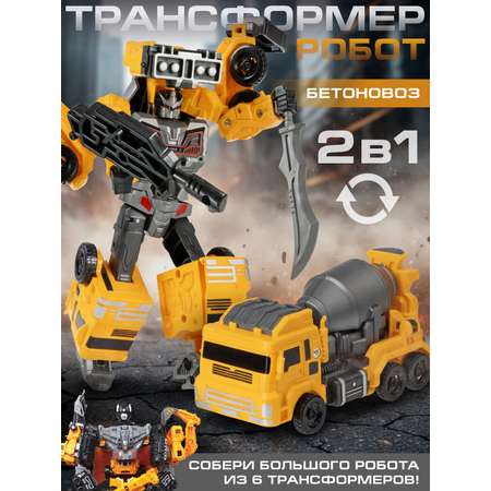 Трансформер-бетоновоз входит в коллекцию из шести трансформеров, соединив которые между собой можно собрать большого робота! Соберите всю коллекцию роботов- трансформеров 6 в 1 . Инструкция по сборке входит в комплект.
