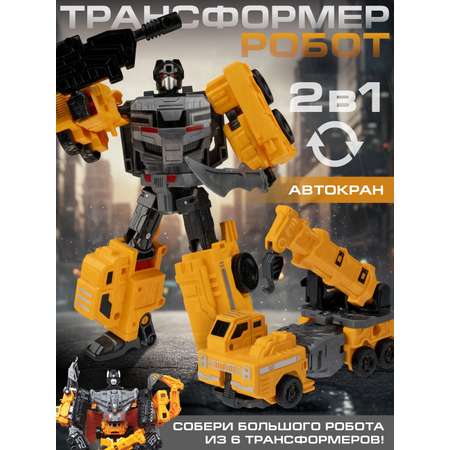 Трансформер-автокран входит в коллекцию из шести трансформеров, соединив которые между собой можно собрать большого робота! Соберите всю коллекцию роботов- трансформеров 6 в 1 . Инструкция по сборке входит в комплект.