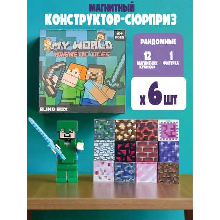 Магнитный конструктор из блоков в стиле Майнкрафт перенесет вас в мир любимой игры. Набор состоит из 6-ти коробочек, в каждой из которых 12 рандомных блоков и 1 случайная фигурка. Что именно попадется в наборе - сюрприз. Соберите всю коллекцию, создавая большие постройки. Кубики имеют размер 2х2 см, внутри находится мощный магнит, который надежно скрепляет блоки между собой. Создавай собственные блоковые вселенные с магнитными кубиками: домики, шахты, фермы и крепости — всё собирается быстро и надёжно.
