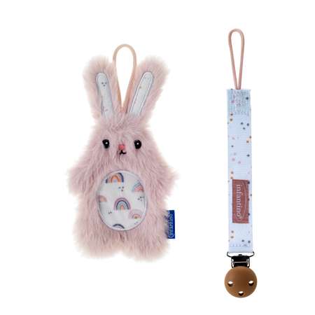 - В комплекте с пустышкой идёт, милый плюшевый кролик, который станет отличным подарком для малыша;