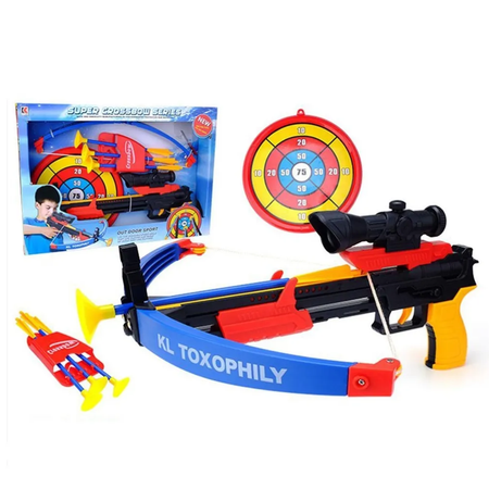 Если вашему сынишке надоели обычные пистолеты, предлагаем купить детский арбалет - это уникальный арбалет с мишенью и стрелами, а так же оснащенный прицелом, который обеспечит вашему ребенку захватывающий игровой опыт. Так же при желании можно использовать отдельно лук ( а еще мишень и 3 стрелы с присосками).