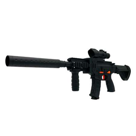 Для того чтобы привести в действие автомат - соберите конструкцию - вставьте батарейки и зарядите магазин мягкими пулями. Так же в комплект входит глушитель, съемный оптический прицел и шомпол "для прочистки ствола".