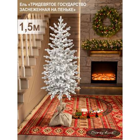 Ель тридевятое государство Поезд Ёлок литая заснеженная на пеньке 180см.