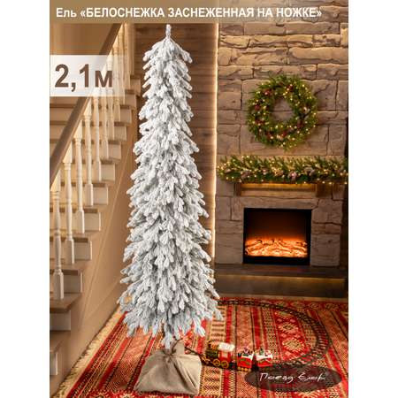 Ель Белоснежка Поезд Ёлок литая заснеженная на высокой ножке 210см.