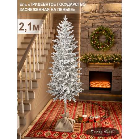 Ель тридевятое государство Поезд Ёлок литая заснеженная на пеньке 210см.