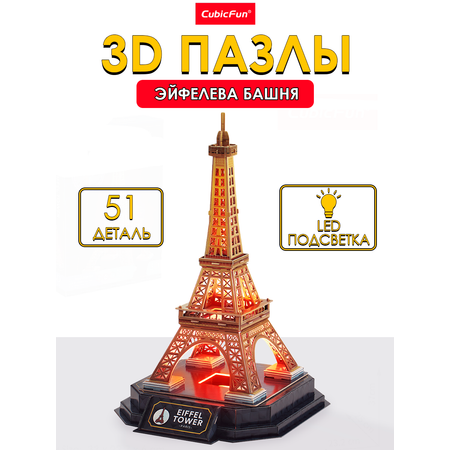 Пазл CubicFun Эйфелева башня 51 деталь LED 3D