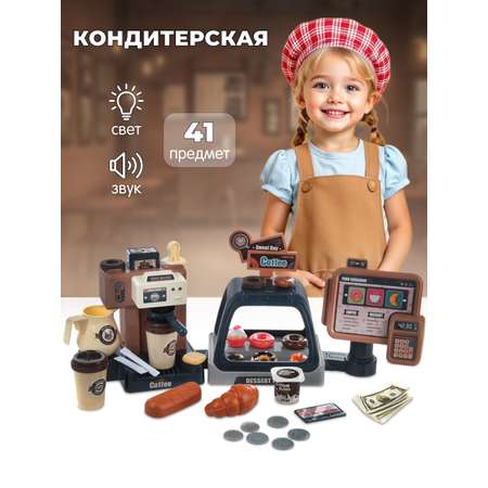 Кафе с игрушечной детской кассой, набором продуктов, светом и звуком для сюжетных и ролевых игр. Большое количество аксессуаров, подвижные элементы. Изготовлено из прочных и безопасных материалов в качественном исполнении.