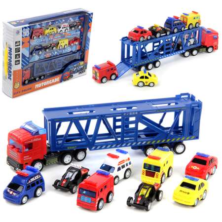 Набор машинок - мечта каждого маленького автолюбителя. Игрушка оформлена в яркой расцветке, реалистичном дизайне. В комплект входят автовоз и маленькие машинки. Платформа отсоединяется. Задняя крышка опускается, верхний ярус опускается. Машинки катаются вперед-назад. Маленькие машинки оснащены инерционным механизмом. Благодаря такой игрушке ребенок будет с удовольствием развивать мелкую моторику рук, координацию движений, воображение, зрительное восприятие.