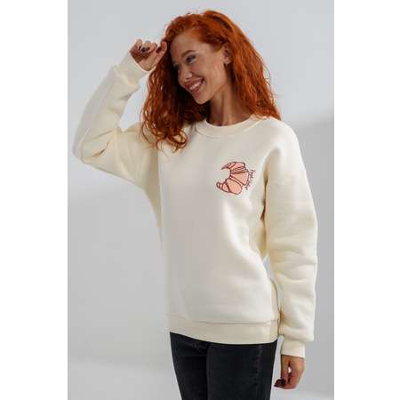 - Цвет и милая графика — кремовый оттенок идеально сочетается с любым гардеробом. На груди — изящный принт круассана, а на спине — крупная надпись. Идеально для прогулок или просто домашнего релакса!