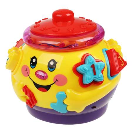 Эта яркая музыкальная игрушка, выполненная в виде забавного горшочка непременно понравится малышу. Играя с сортером, главной задачей ребёнка будет правильно подобрать блок к соответствующему отверстию. Ребёнок будет с удовольствием играть с сортером, слушая любимые песенки и забавные звуки.