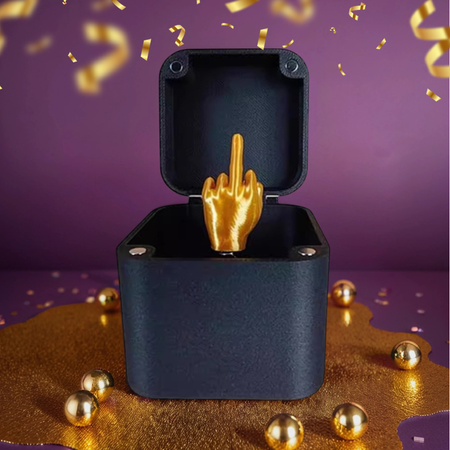 Внутри стильной чёрной коробки скрыт весёлый «выпрыгивающий» сюрприз — стоит только открыть крышку, как он мгновенно вылетает на пружине, вызывая море эмоций и смеха.