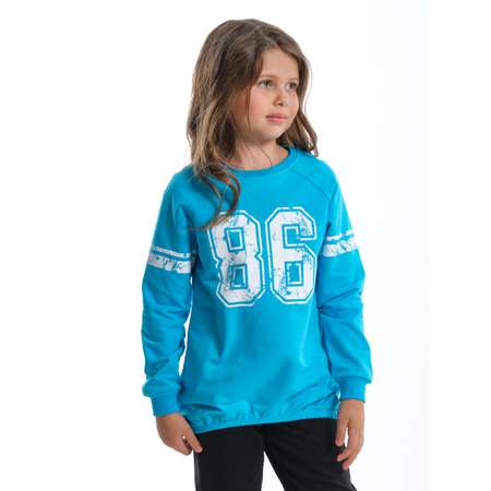 Свитшот для девочки (цвет-бирюзовый) Выполнена из кардной пряжи. Двунитковый хлопковый футер, 5% лайкры. Отделка: ластичное полотно (хлопок, 5% лайкры). Крой реглан, объемный комфортный, округлая горловина и манжеты – трикотажная резинка. Низ собран на резинку. Декорирована принтом на груди и рукавах. Подходит как универсальный элемент одежды для детсада, дома, дошкольных мероприятий, прогулок, спортивных и игровых площадок.