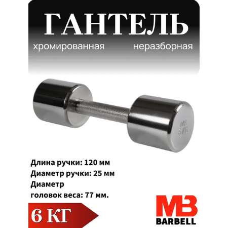 Гантель MbBarbell Фитнесс неразборная 6,0 кг хром