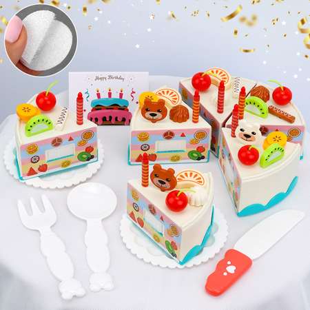 Игрушечный набор тортик на липучках - идеальный подарок как для девочки, так и для мальчика. Яркие и необычные продукты, понравятся деткам. В наборе 42 предмета. Представляет собой заготовку тортика, который нужно украсить на свой вкус ягодами, кусочками фруктов и свечками, а потом разрезать на части. На тортике есть отверстия, куда эти украшения надо вставлять. Отлично подойдет для детской игрушечной кухни. Упаковано в картонную коробку. Увлекательная развивающая детская игра, в которой ребёнку предстоит приготовить свой тортик и разрезать его на порции для гостей. Кусочки торта соединены липучками, которые можно разрезать пластиковым ножом. Ребёнок может сам выбрать, какие сладости и в какой последовательности будут красоваться на его тортике. Игровой набор продуктов помогает развивать креативность, мелкую моторику пальцев и воображение малыша!
