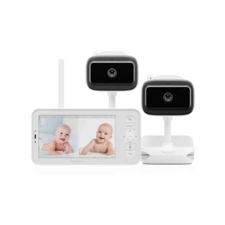 Видеоняня с двумя камерами в комплекте Ramicom VRC400X2 – это современная и надёжная видеоняня. Родительский блок оснащен большим дисплеем, а камеры устроены таким образом, что их можно закрепить практически на любом подходящем предмете интерьера или мебели. Например, можно закрепить на ручке коляски, и спокойно оставить ребенка спать. Родители могут контролировать малыша как с помощью родительского блока (монитора), так и с экрана смартфона или планшета, через специальное удобное приложение. Благодаря тому, что в камеры видеоняни и в монитор встроены аккумуляторы, дополнительное оборудование для автономного питания не потребуется.
