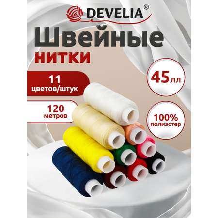 Нитки для шитья Develia армированные 45ЛЛ 120 м швейный набор 11 цветов