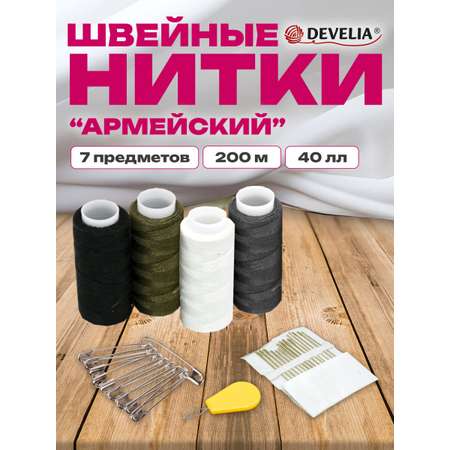Нитки для шитья Develia армированные 40ЛЛ 200 м швейный набор 4 цвета с иголками