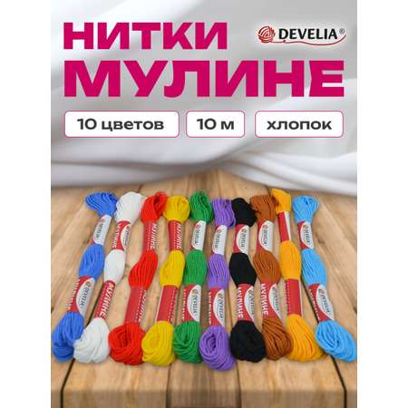 Нитки мулине 10 цветов DEVELIA — идеальный выбор для тех, кто ценит качество в наборе для творчества и рукоделия. Этот набор ниток для вышивания включает 10 мотков хлопковых ниток мулине длиной 10 метров, которые отлично подходят для шитья и вышивания. Стойкие к стирке и химическим воздействиям, нитки мулине DEVELIA сохраняют яркость и блеск, идеально ложатся на ткань и не путаются, что особенно важно для хобби и творчества в школе и дома. Благодаря отсутствию скрутки, нитки легко разделяются на нужную толщину, что делает их универсальными для множества техник: от вышивки крестиком и гладью до макраме и плетения красочных браслетов. Этот набор ниток для шитья и вышивания станет надежным помощником в создании уникальных изделий и предметов интерьера, придавая вашим работам неповторимую красоту и долговечность.