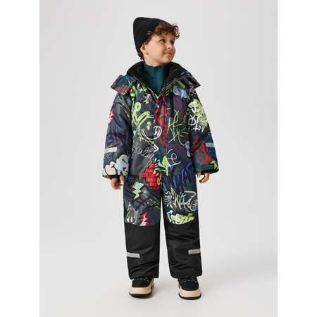 Детский утеплённый непромокаемый комбинезон призван разнообразить гардероб мальчиков и девочек. Подкладка выполнена из стандартной подкладочной ткани и мягкого флиса, что обеспечивает комфорт в течение дня. Вид утеплителя – синтепон (вес 250г/м2). Рекомендованный температурный режим от 0 до -25 градусов. Застежка на молнию с внутренней и внешней ветрозащитной планкой на липучках сохраняет тепло в течение дня. Защита от защемления подбородка добавляет удобство в ношении. Внутренние бретели позволяют легко снять верхнюю часть комбинезона в помещении. На уровне талии расположена эластичная резинка, что обеспечивает комфортную посадку по фигуре. На бретелях расположен текстовый принт "OUTDOOR FRIENDLY" [англ. - "Подходит для ношения на открытом воздухе"] для акцента. Нагрудный карман на молнию добавляет модели практичности. Несъемный капюшон с застежкой на липучки защищает от ветра. Светоотражающие элементы обезопасят ребенка от машин в темное время суток. Куртка украшена принтом в стиле граффити, что придает изделию интересный вид. Низ брюк дополнен регулируемой силиконовой штрипкой, которая надевается на обувь, чтобы предотвратить попадание влаги. Модель представлена в нескольких цветах. Добавьте комбинезон в гардероб ребенка для прогулок на свежем воздухе или активного отдыха.