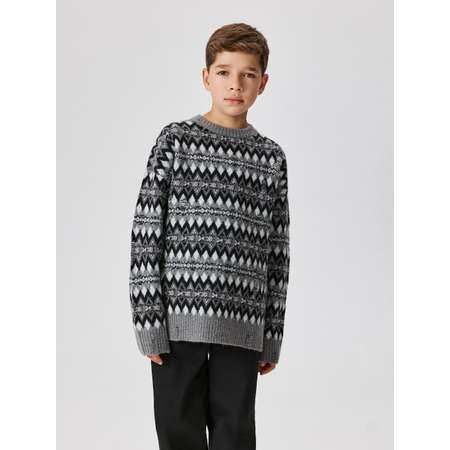 Детский вязаный джемпер с декоративными разрезами для мальчика выполнен из мягкой пряжи, что обеспечивает комфорт в ношении. Модель прямого силуэта со спущенной линией плеча позволяет создавать многослойные образы с надетой под низ рубашкой. Плотный джемпер декорирован разрезанными нитями в плетении, что придает аутфиту акцент в стиле гранж. Фигурный рисунок добавляет модели оригинальный и интересный вид. Округлая горловина, низ рукавов и самого изделия выполнены в виде эластичных манжет. Стилизуйте черно-серый джемпер с рубашкой и брюками, чтобы создать модный аутфит на прогулки с друзьями.