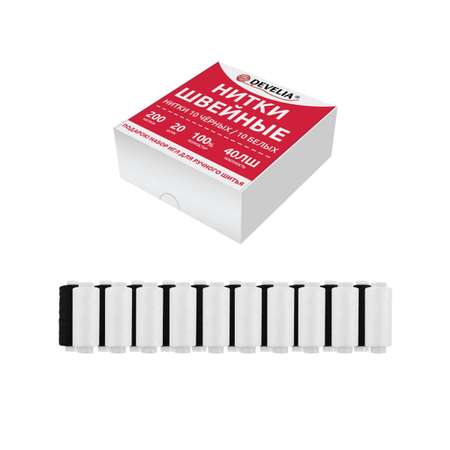 Цена на Нитки для шитья Develia армированные 40ЛШ 200 м швейный набор 20 штук с иголками белые черные - 462 ₽.