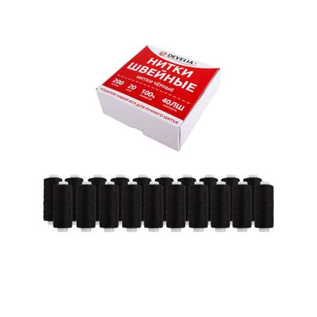 Нитки для шитья Develia армированные 40ЛШ 200 м швейный набор 20 штук с иголками черные