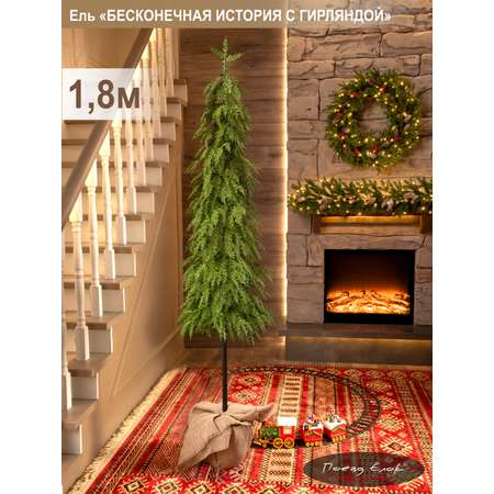 Ель Бесконечная история Поезд Ёлок литая с гирляндой на пеньке 180 см.