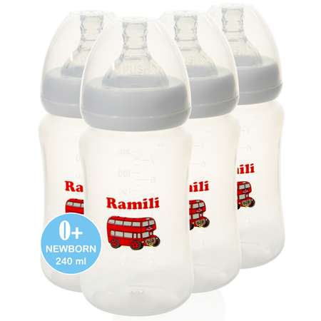 Четыре противоколиковые бутылочки для кормления Ramili Baby 240MLX4