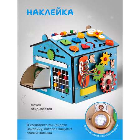 Бизиборд со светом - отличная развивающая игрушка от 1 года. Бизидом – это идеальный подарок для малыша! Уникальный детский бизиборд дом не только увлекает, но и способствует развитию вашего ребенка. Подходит для детей 1 года и старше, а благодаря большому ассортименту от производителя KimToys можно подобрать развивающий домик для девочек и мальчиков на любой вкус. Основное преимущество в отличие от других игрушек монтессори для малышей – многофункциональность. Помогает развивать мелкую моторику, логическое мышление, концентрацию и координацию движений. Наши деревянные игрушки для развития ребенка производятся из высококачественного дерева и с использованием безопасных красок. Данная модель представлена в 4 цветах – в универсальной расцветке, бизиборд для мальчиков, бизиборд для девочки. Домик развивашка - отличный подарок на 1 год мальчику и девочке, подарок на Новый год 1 год. Добавьте бизидом в корзину прямо сейчас, и убедитесь сами, как множество цветов, форм и тактильных элементов надолго увлечет ваших детей! Цвет некоторых элементов может отличаться от образца.