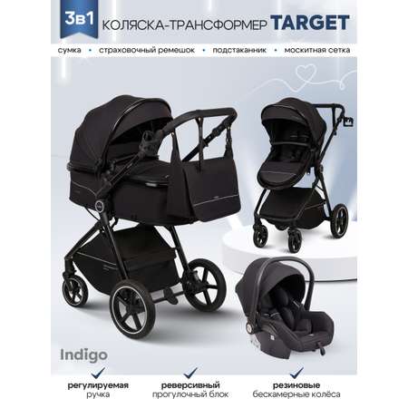 Цена на Коляска трансформер Indigo TARGET 3в1 черный - 20159 ₽.