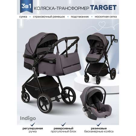 Цена на Коляска трансформер Indigo TARGET 3в1 серый - 20159 ₽.