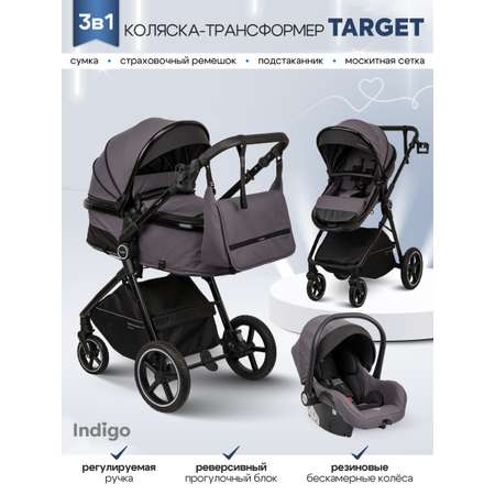 Цена на Коляска трансформер Indigo TARGET 3в1 серый - 17919 ₽.