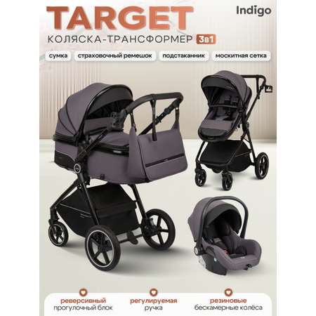 Цена на Коляска трансформер Indigo Target 3в1 серый - 16499 ₽.