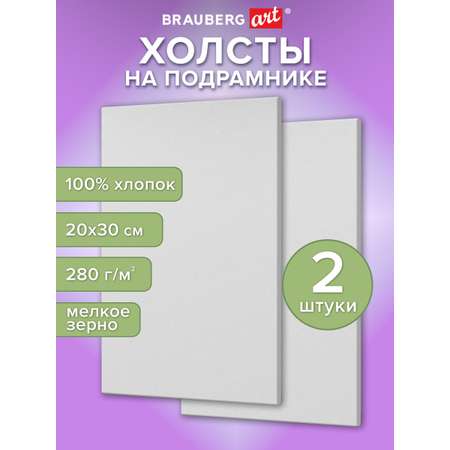 Цена на Холст для рисования Brauberg на подрамнике 20х30 см грунтованный 100% хлопок набор 2 штуки - 405 ₽.