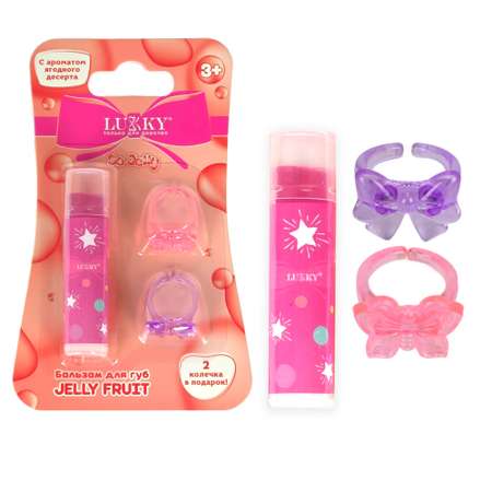 Бальзам для губ LUKKY Jelly Fruit детский сиреневый и 2 колечка