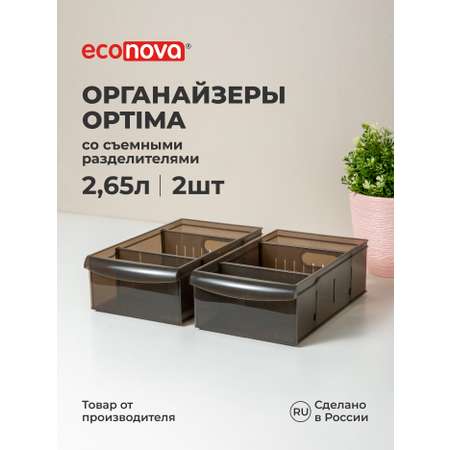 Цена на Набор органайзеров OPTIMA Econova 2,65л, 15*26,6*8,7см, 2шт., коричневый - 563 ₽.