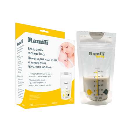 В упаковке 30 пакетов объемом по 180 мл. Пакеты для хранения и заморозки грудного молока Ramili® изготовлены из безопасных материалов с применением самых передовых технологий. Стерильно упакованы на современном оборудовании, не содержат бисфенол-А.