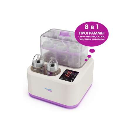 Стерилизатор-подогреватель и пароварка 8-в-1 Ramili Baby BSS300 – это уникальное в своем роде устройство, которое обеспечивает быструю и безопасную стерилизацию всех видов бутылочек (до 6 шт. одновременно), пустышек и других предметов, необходимых для кормления и ухода за малышом. Предусмотрена функция сушки и автоматического поддержания бутылочек и аксессуаров стерильными в течение 24 часов. С помощью данного устройства вы сможете сохранить чистоту и здоровье вашего малыша.