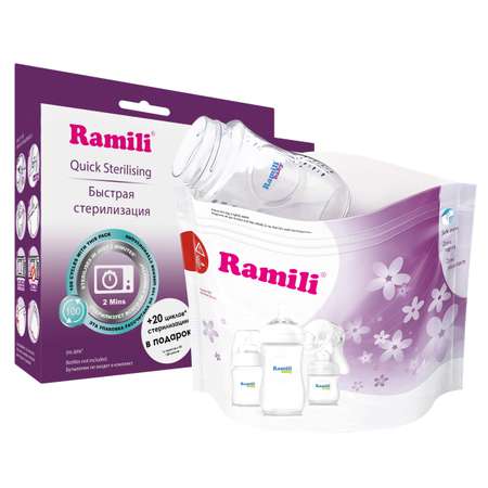 Пакеты для паровой стерилизации бутылочек, молокоотсосов и аксессуаров в СВЧ-печи Ramili RSB110